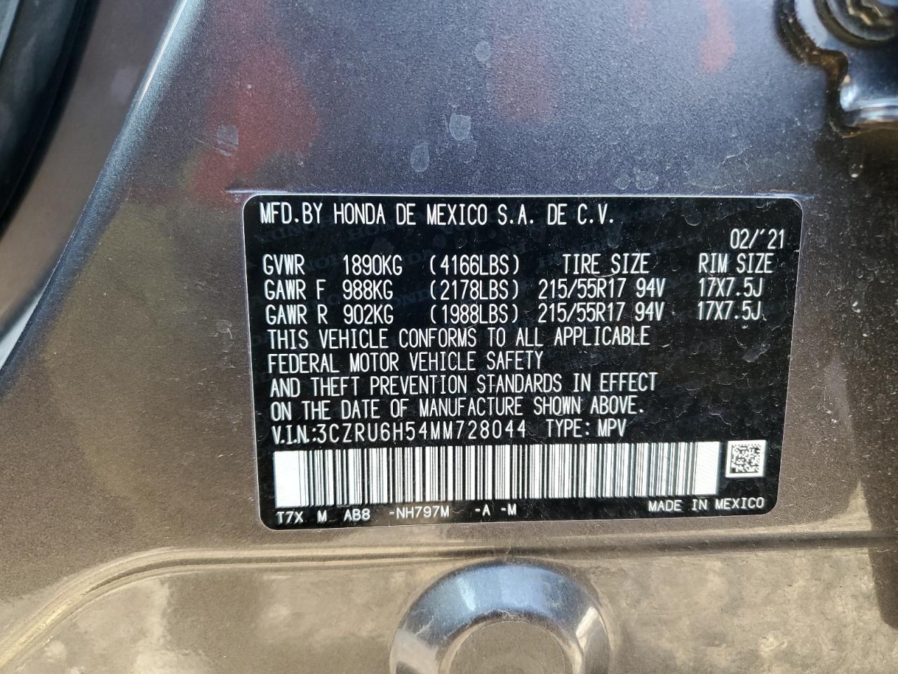 HONDA HR-V 1.8 2021 г.в., Полный привод (3CZRU6H54MM728044) из США