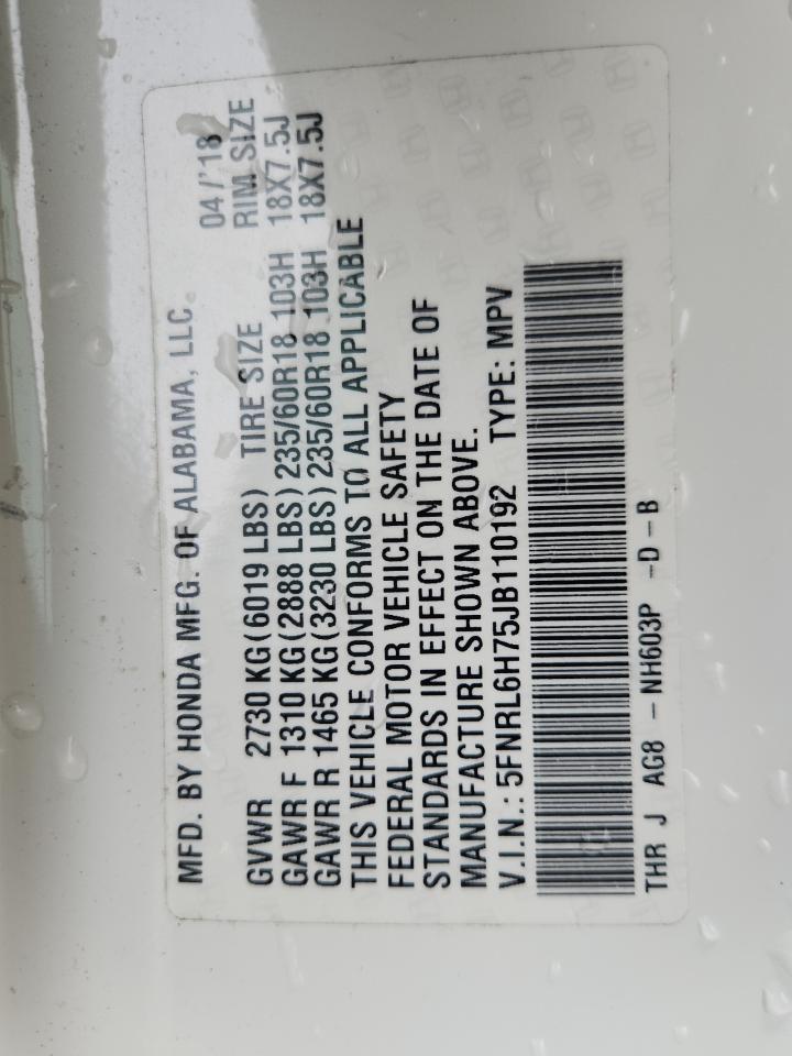 Цвет БелыйЦилиндры 6VIN 5FNRL6H75JB110192Состояние Заводится и едет (проверено)Повреждение Задняя