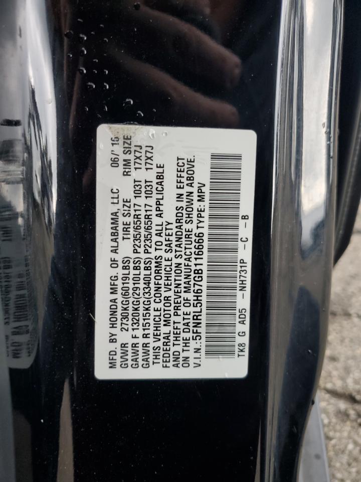 Цвет ЧерныйЦилиндры 6VIN 5FNRL5H67GB116666Состояние Заводится и едет (проверено)Повреждение Передняя или задняя