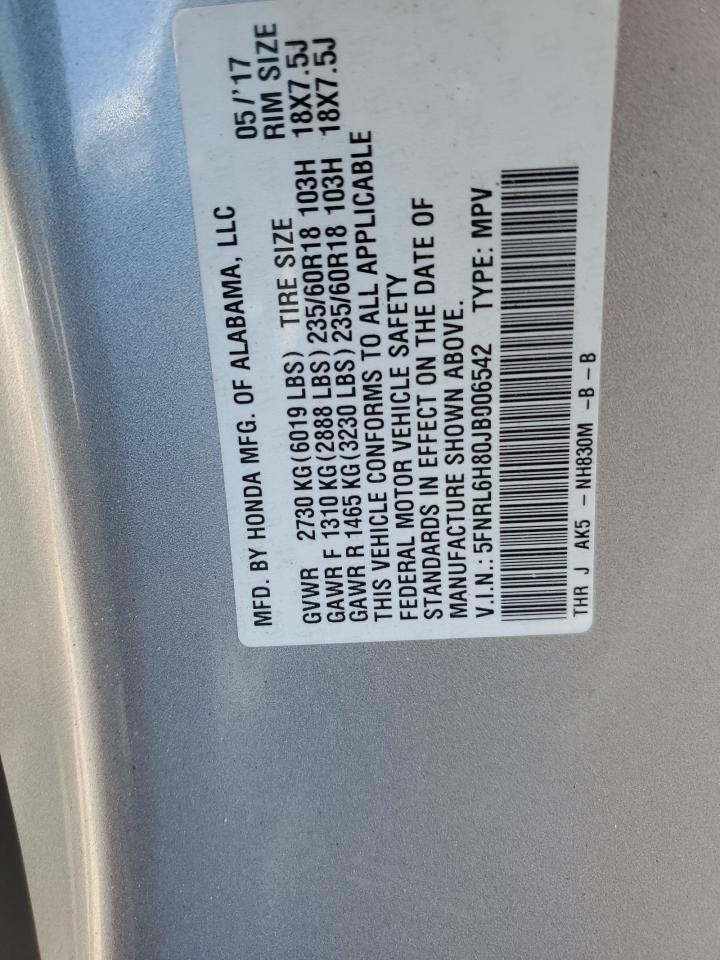 Цвет СеребряныйЦилиндры 6VIN 5FNRL6H80JB006542Состояние Заводится и едет (проверено)Повреждение ГрадДата аукциона 2025-11-10