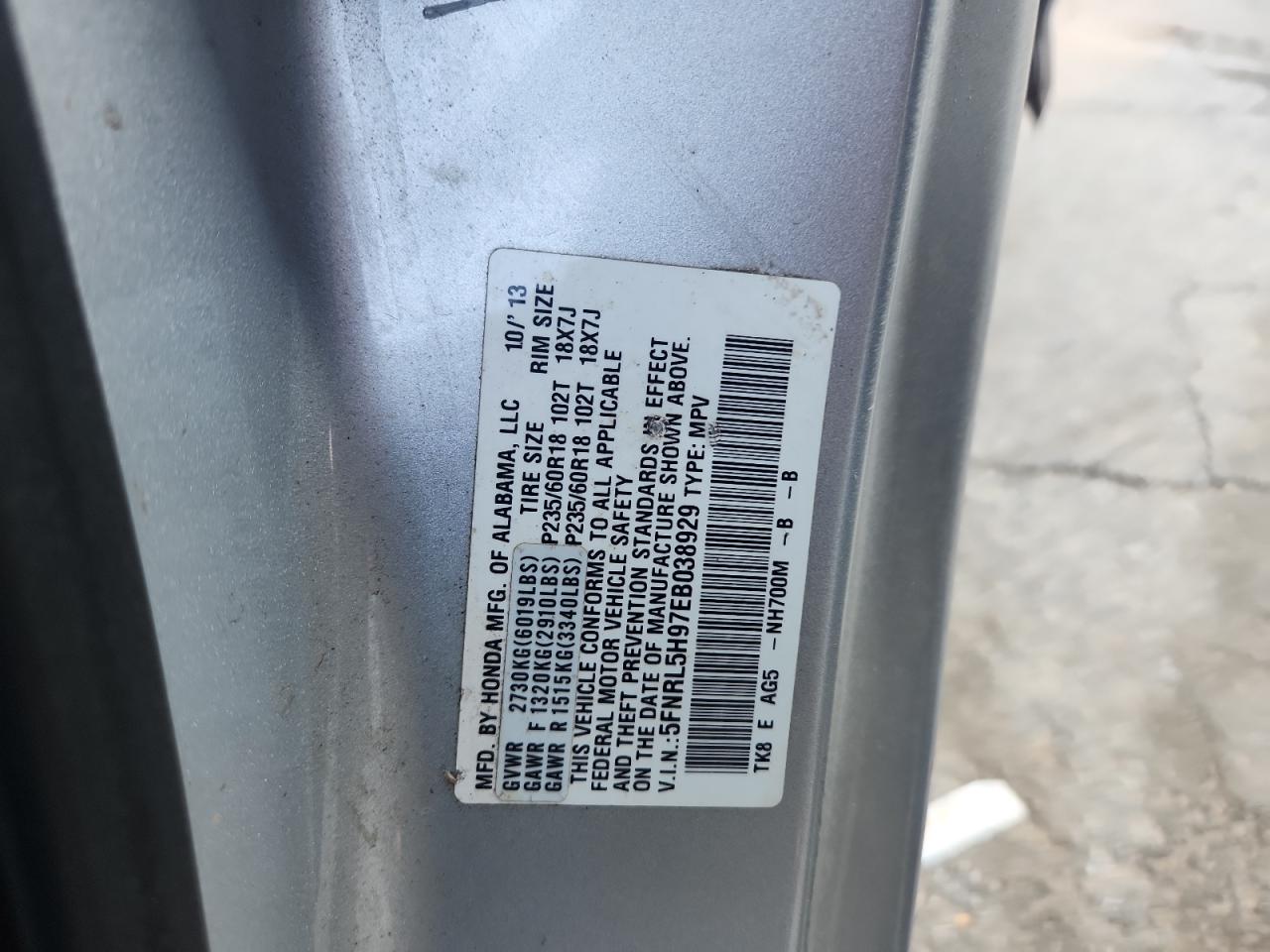 Цвет СеребряныйЦилиндры 6VIN 5FNRL5H97EB038929Состояние Заводится и едет (проверено)Повреждение Передняя или задняя