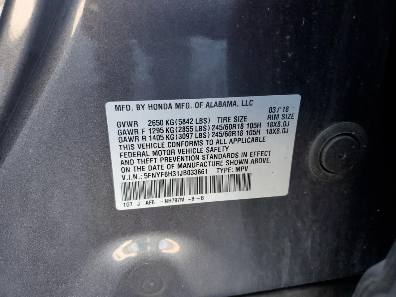 HONDA PILOT 3.5 2018 г.в., Полный привод (5FNYF6H31JB033661) из США