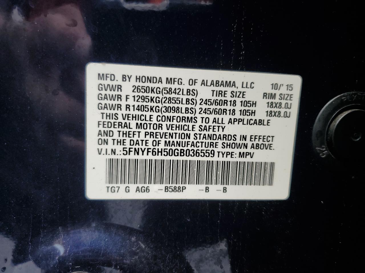 HONDA PILOT 3.5 2016 г.в., Полный привод (5FNYF6H50GB036559) из США