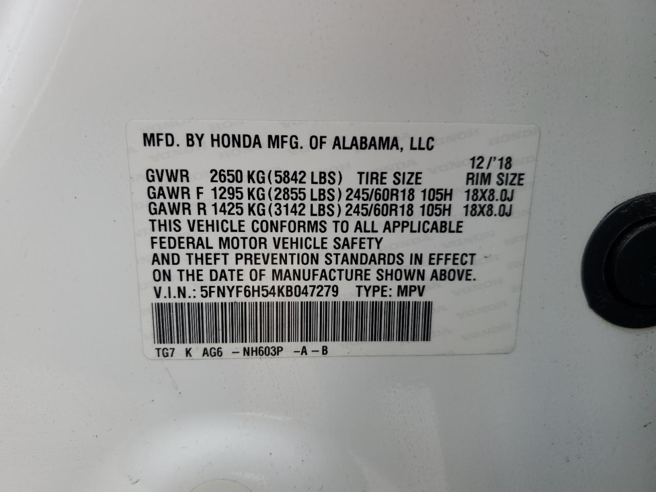 Цвет БелыйЦилиндры 6Привод Полный приводVIN 5FNYF6H54KB047279Состояние Заводится и едет (проверено)Повреждение Передняя или задняяДата аукциона 2025-11-03