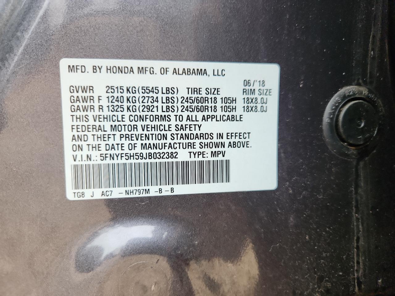 Цвет Древесный угольЦилиндры 6VIN 5FNYF5H59JB032382Состояние Заводится и едет (проверено)Повреждение Передняя или задняя