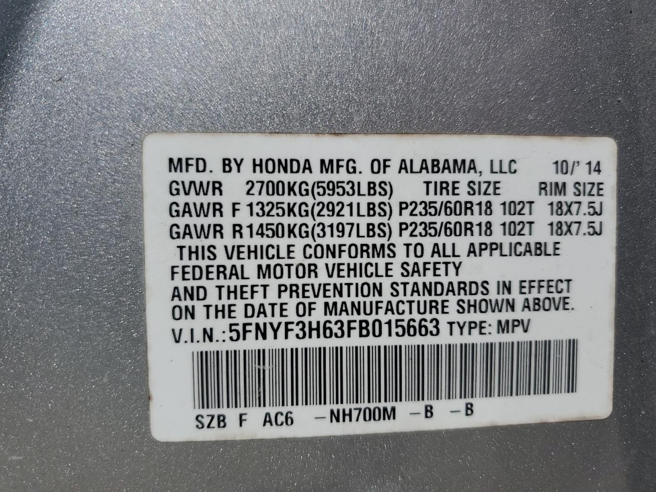 HONDA PILOT 3.5 2015 г.в., (5FNYF3H63FB015663) из США