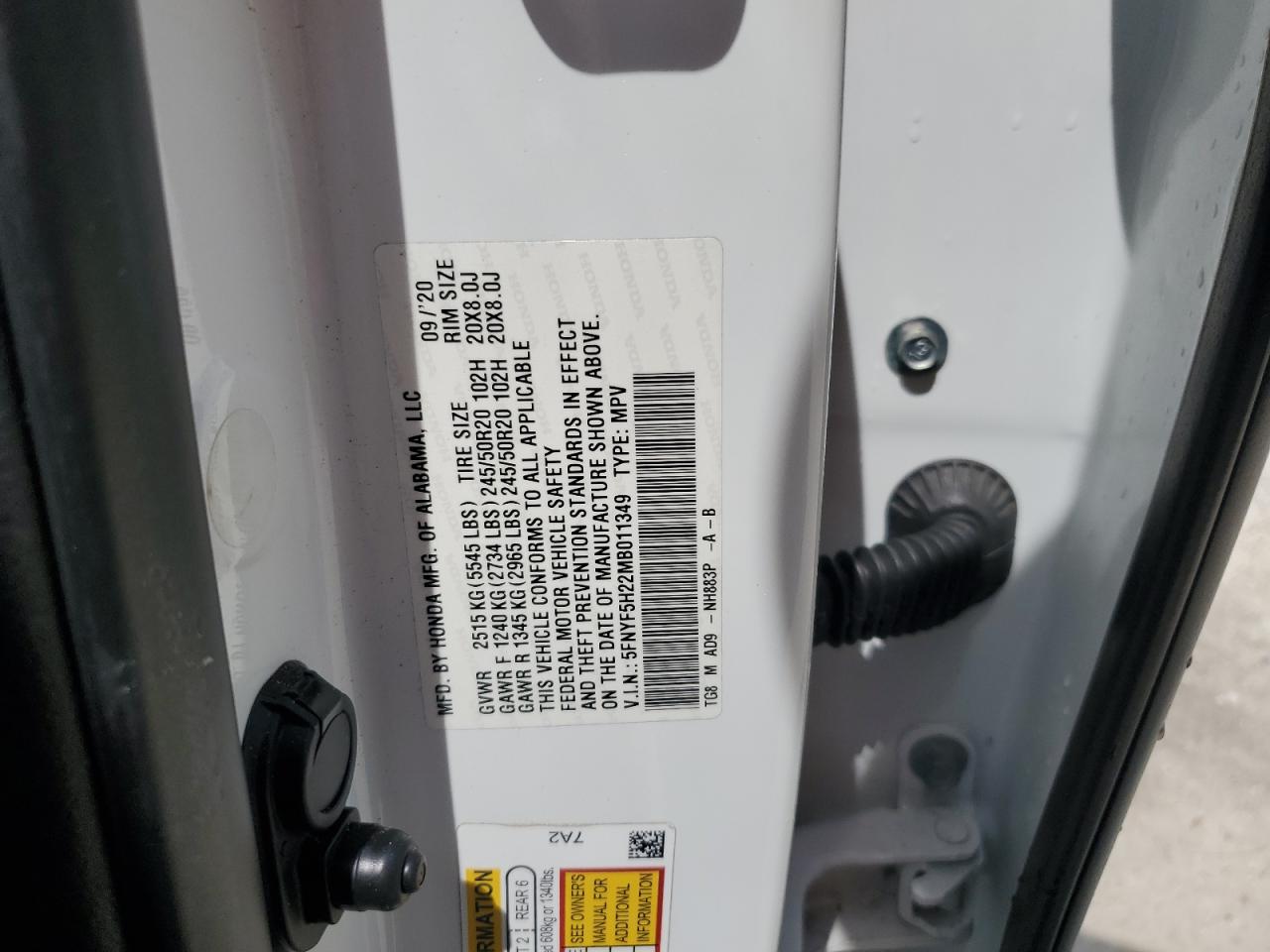 HONDA PILOT 3.5 2021 г.в., (5FNYF5H22MB011349) из США