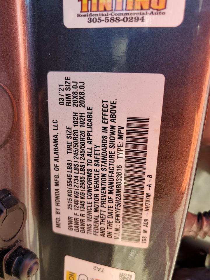 HONDA PILOT 3.5 2021 г.в., (5FNYF5H28MB033615) из США