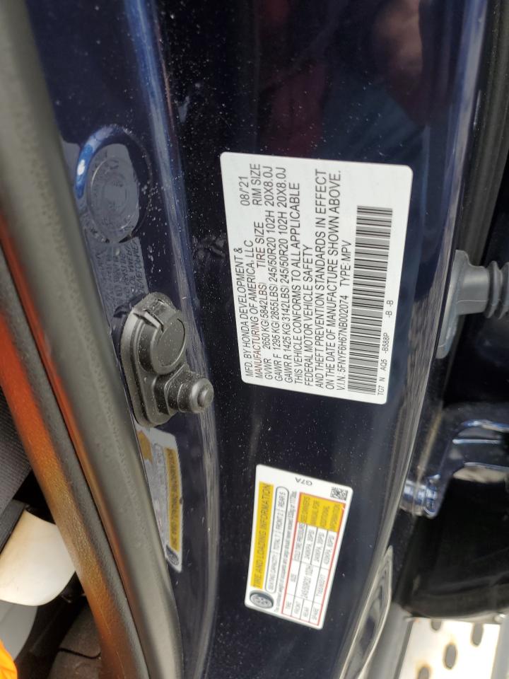 HONDA PILOT 3.5 2022 г.в., Полный привод (5FNYF6H67NB002074) из США