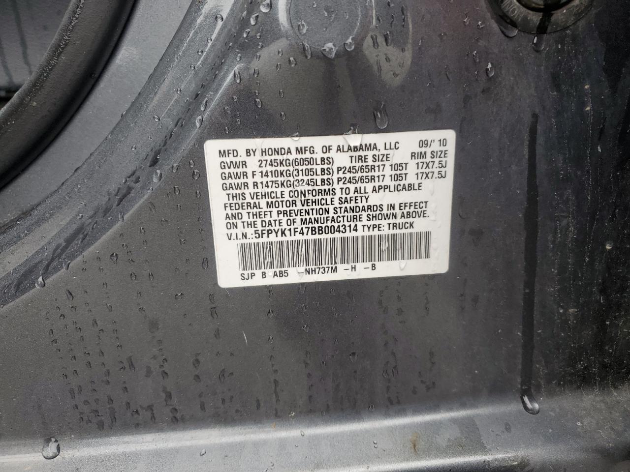HONDA RIDGELINE 3.5 2011 г.в., 4x4 с передним приводом (5FPYK1F47BB004314) из США