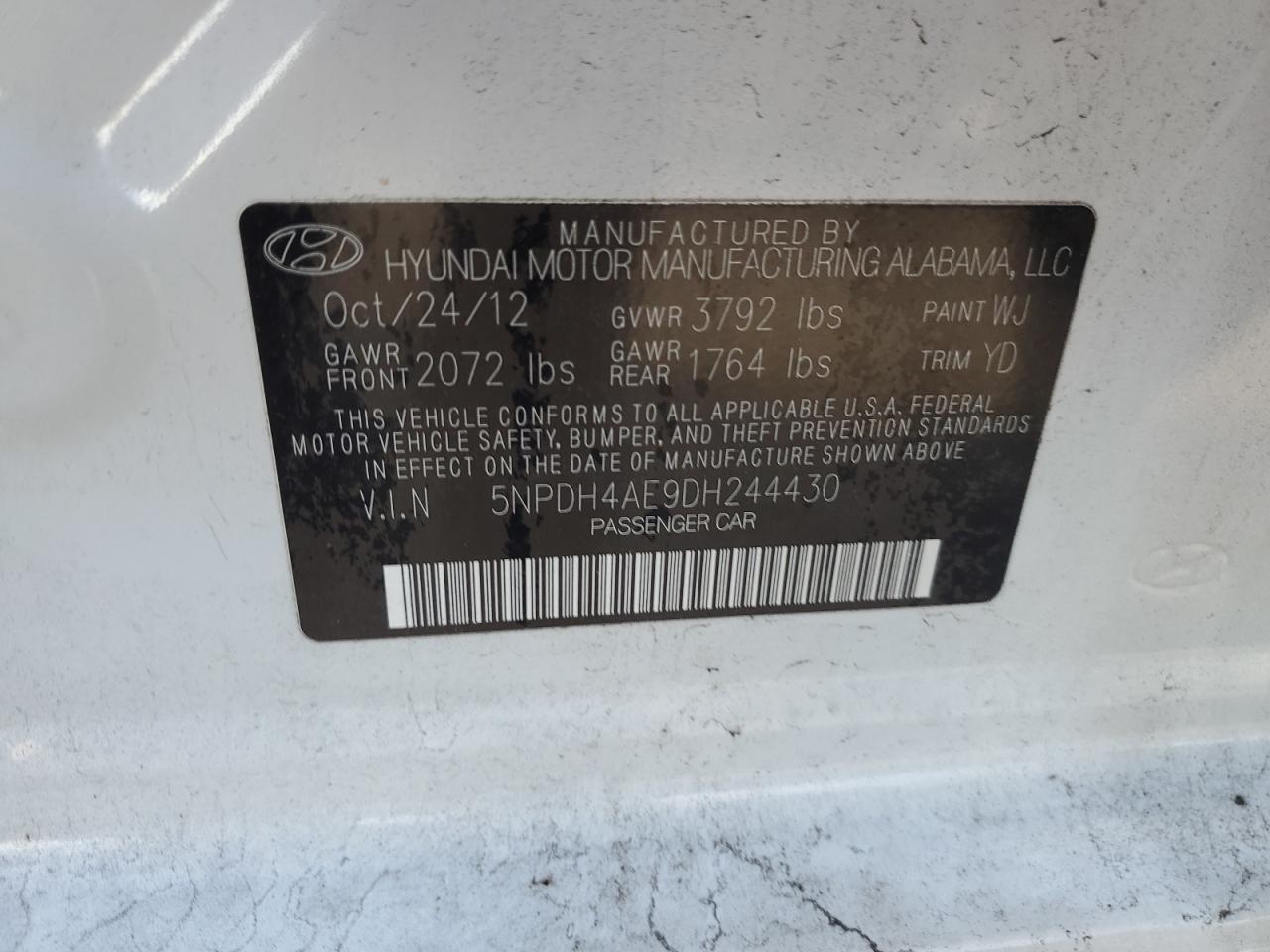 HYUNDAI ELANTRA 1.8 2013 г.в., (5NPDH4AE9DH244430) из США