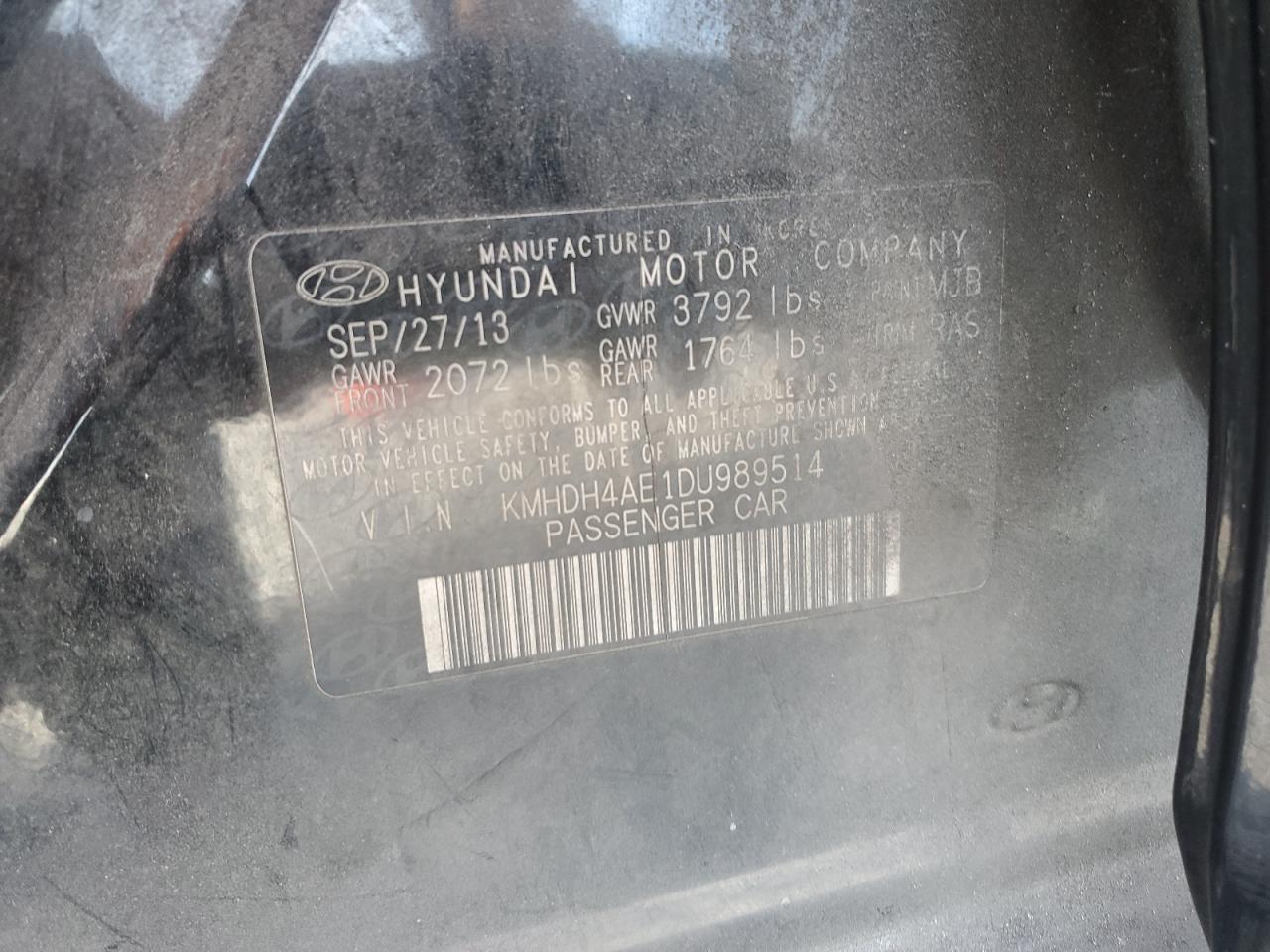 HYUNDAI ELANTRA 1.8 2013 г.в., (KMHDH4AE1DU989514) из США
