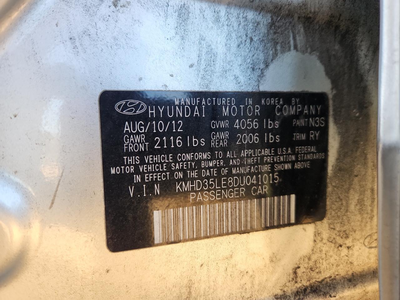 2013 HYUNDAI ELANTRA GLS (ULSAN PLANT)