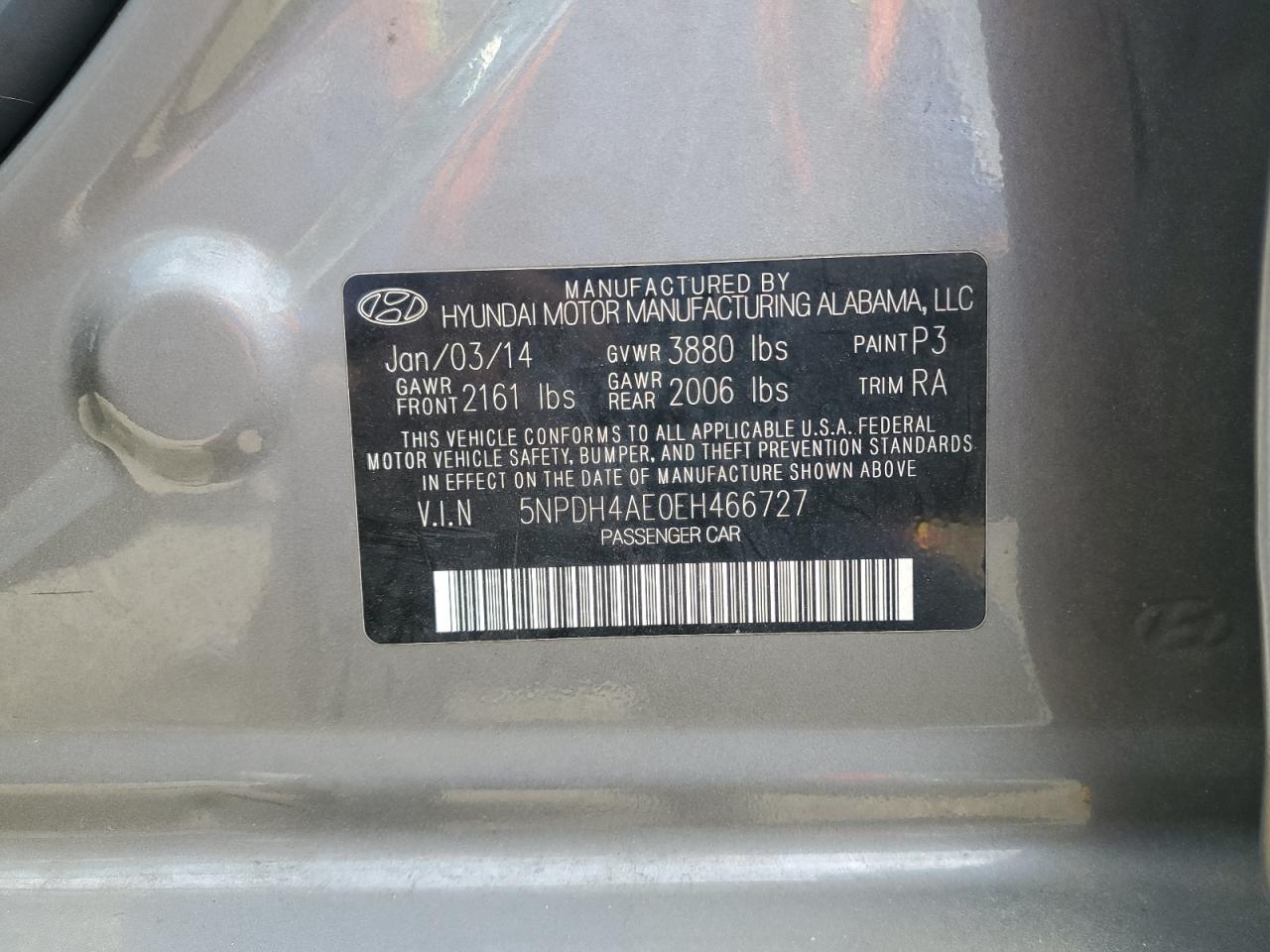 HYUNDAI ELANTRA 1.8 2014 г.в., (5NPDH4AE0EH466727) из США