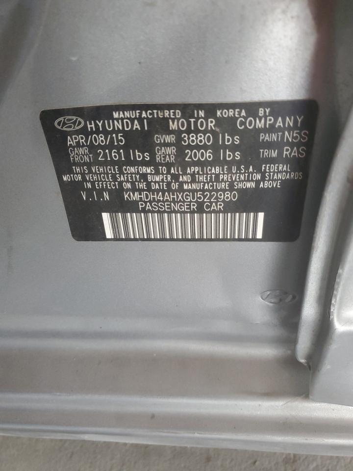 HYUNDAI ELANTRA 2.0 2016 г.в., (KMHDH4AHXGU522980) из США