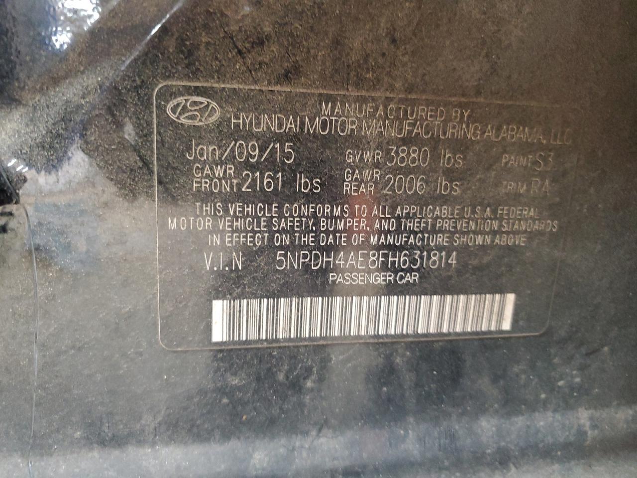 HYUNDAI ELANTRA 1.8 2015 г.в., (5NPDH4AE8FH631814) из США