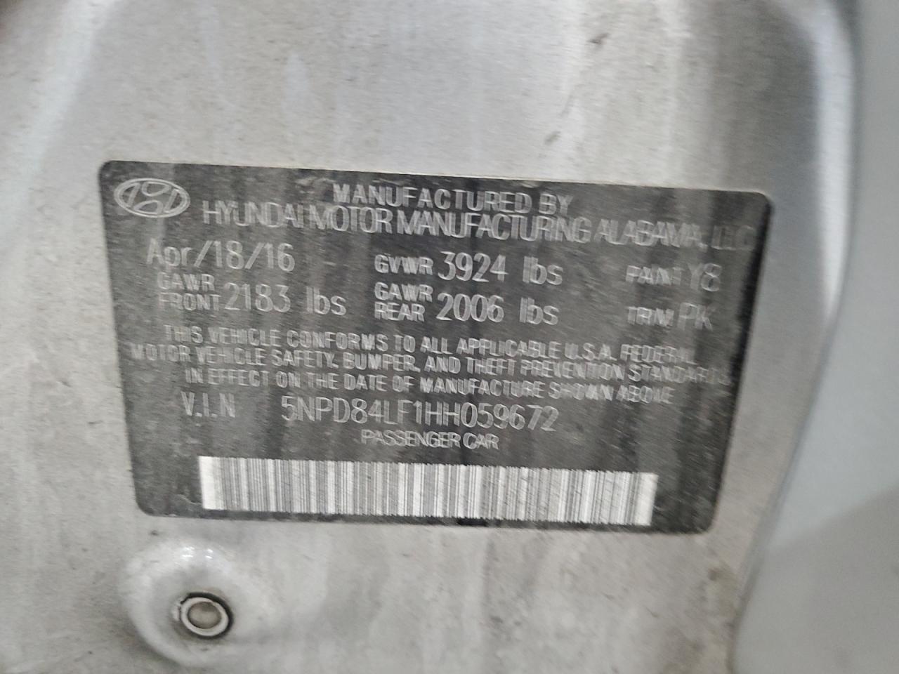 HYUNDAI ELANTRA 2.0 2017 г.в., (5NPD84LF1HH059672) из США
