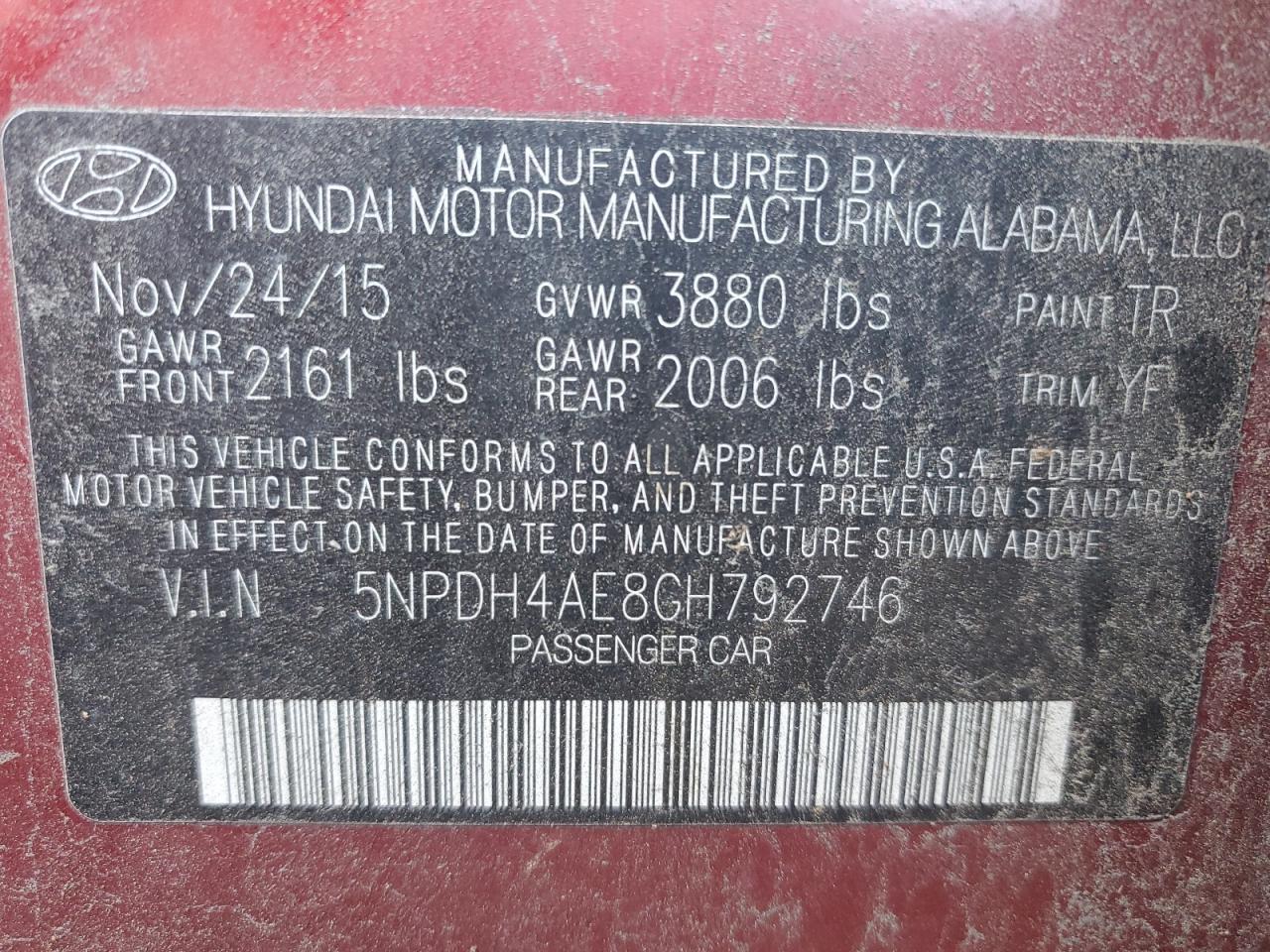 Цвет КрасныйЦилиндры 4VIN 5NPDH4AE8GH792746Состояние НеизвестноПовреждение Передняя или задняя