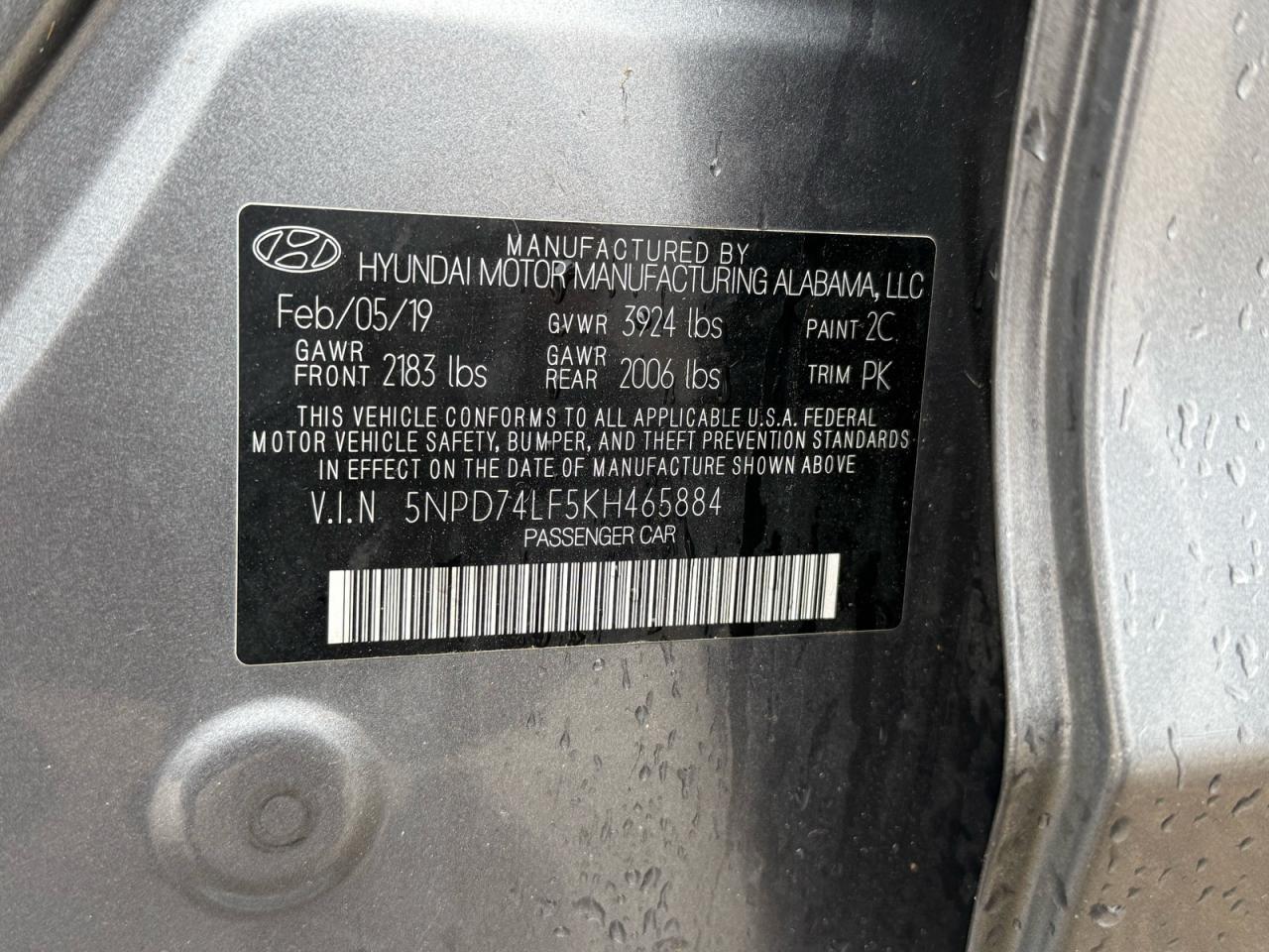 HYUNDAI ELANTRA 2.0 2019 г.в., (5NPD74LF5KH465884) из США