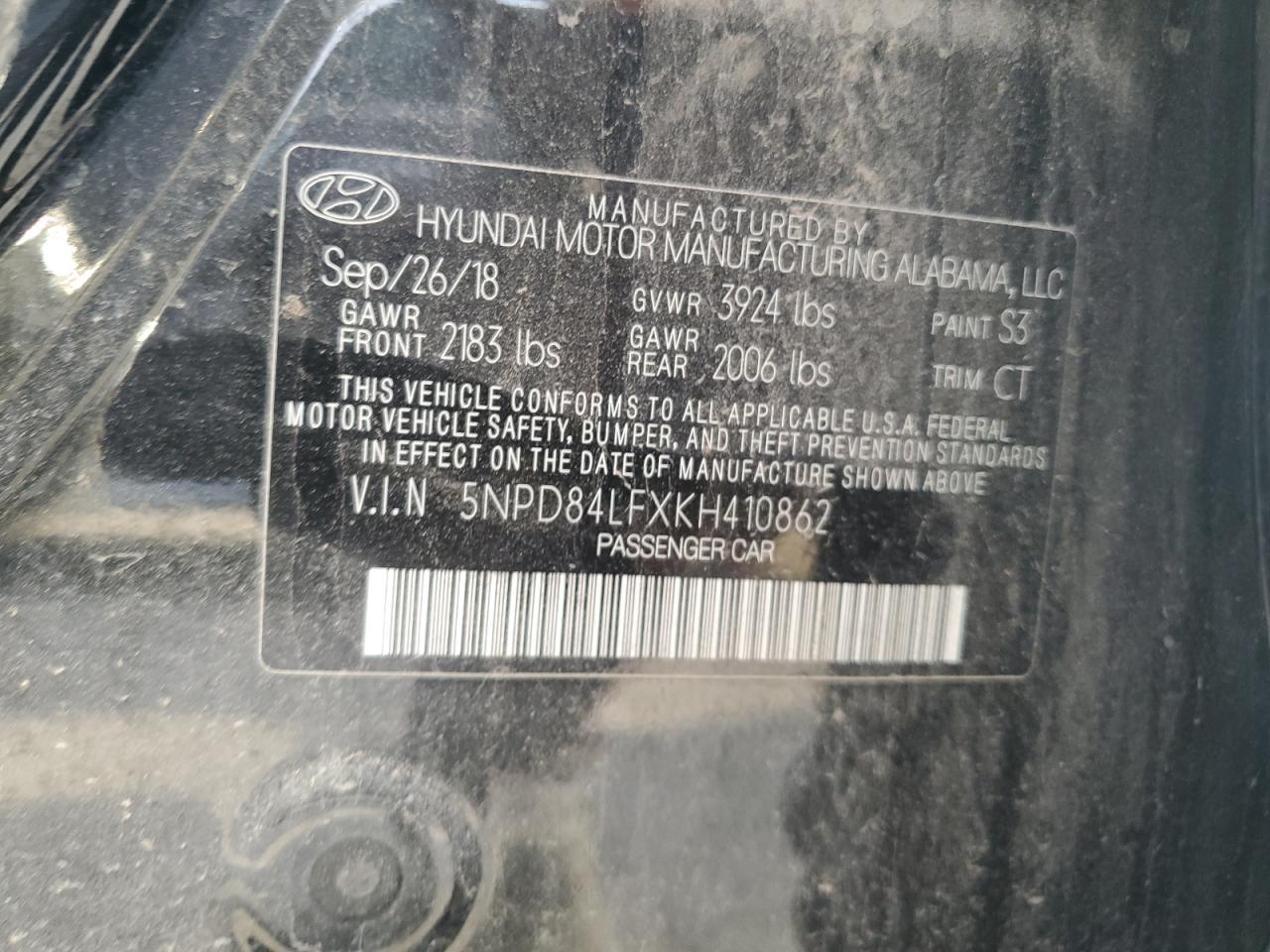 HYUNDAI ELANTRA 2.0 2019 г.в., (5NPD84LFXKH410862) из США