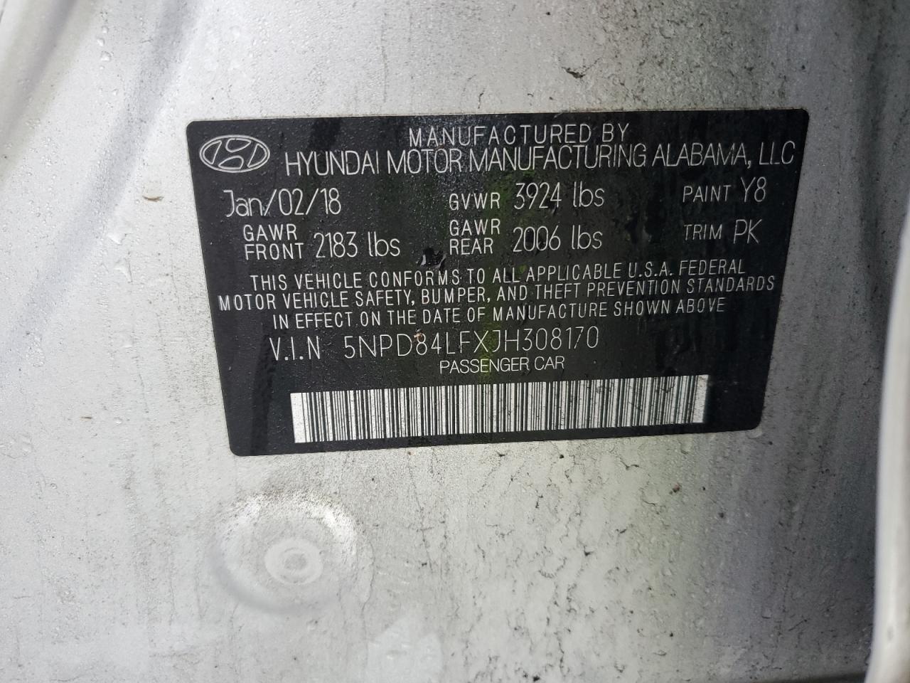 HYUNDAI ELANTRA 2.0 2018 г.в., (5NPD84LFXJH308170) из США