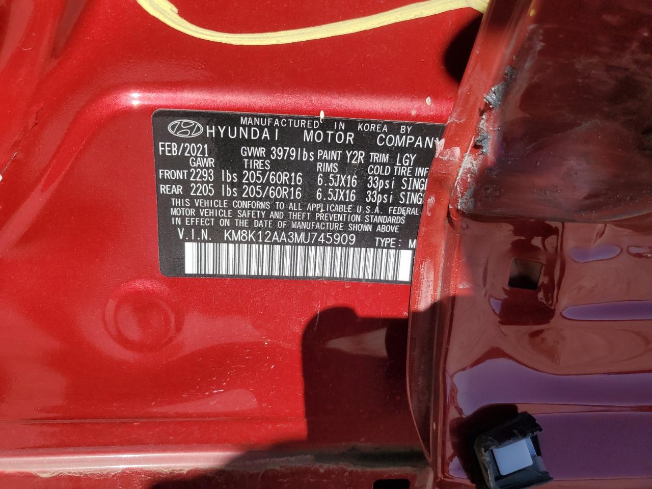 HYUNDAI KONA 2.0 2021 г.в., (KM8K12AA3MU745909) из США
