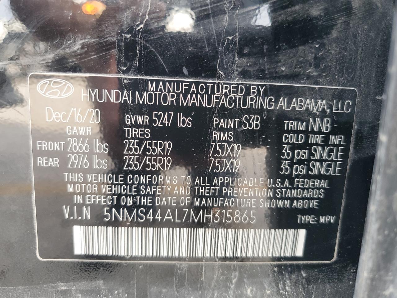 HYUNDAI SANTA FE 2.5 2021 г.в., (5NMS44AL7MH315865) из США