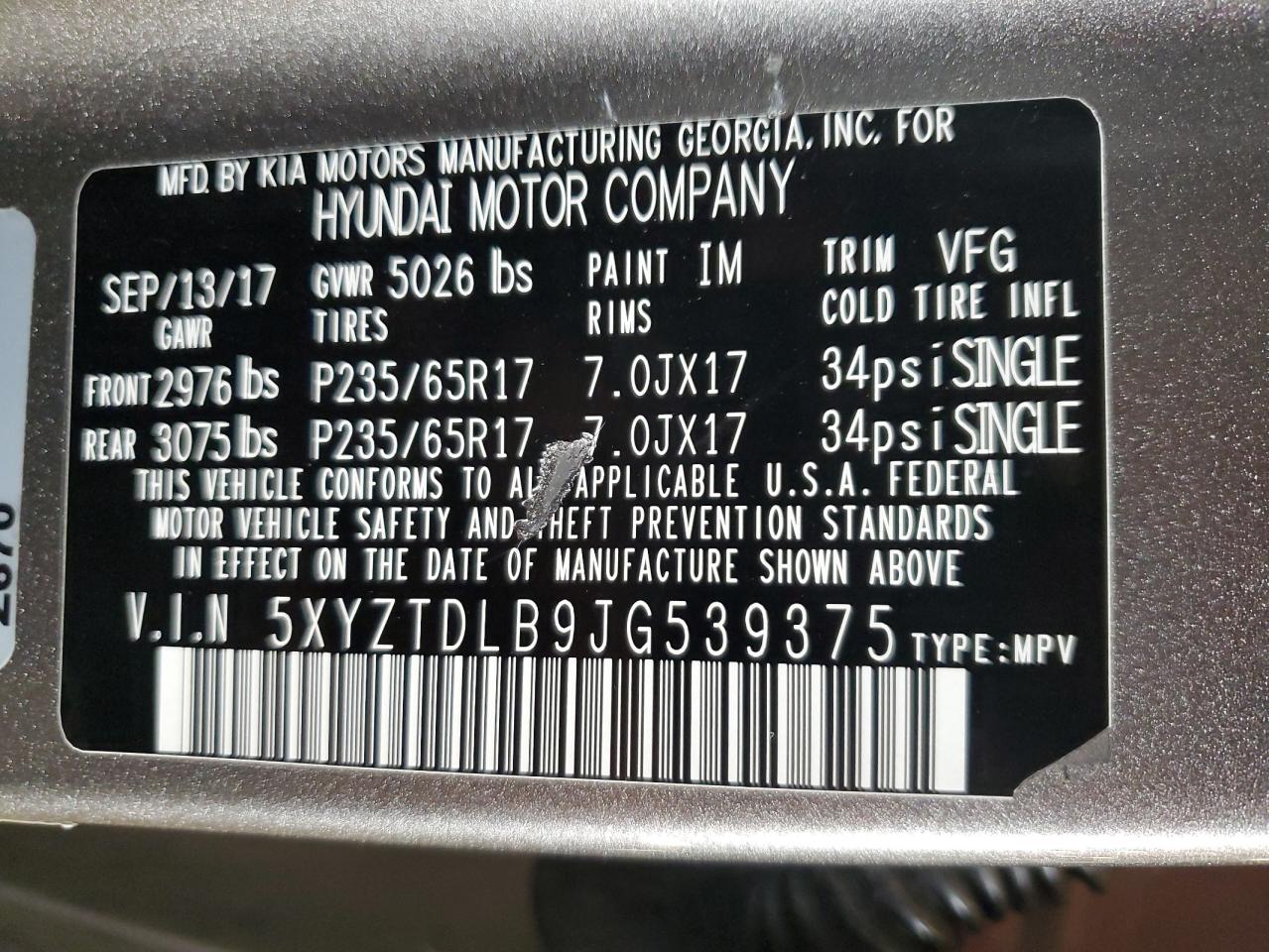 Цвет СерыйЦилиндры 4Привод Полный приводVIN 5XYZTDLB9JG539375Состояние НеизвестноПовреждение Механические поврежденияДата аукциона 2025-11-04