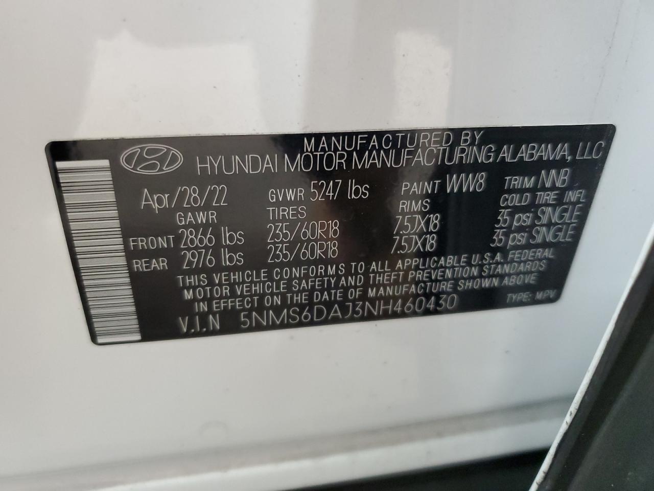 Цвет БелыйЦилиндры 4Привод Полный приводVIN 5NMS6DAJ3NH460430Состояние Заводится и едет (проверено)Повреждение Передняя или задняя