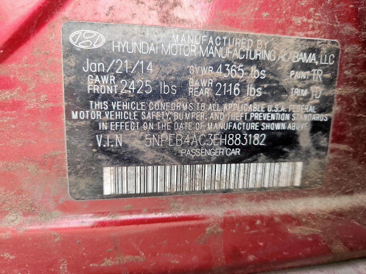 HYUNDAI SONATA 2.4 2014 г.в., (5NPEB4AC3EH883182) из США