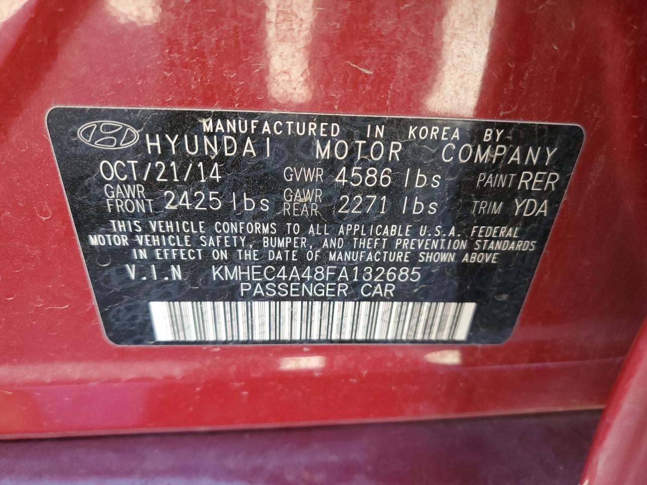 HYUNDAI SONATA 2.4 2015 г.в., (KMHEC4A48FA132685) из США