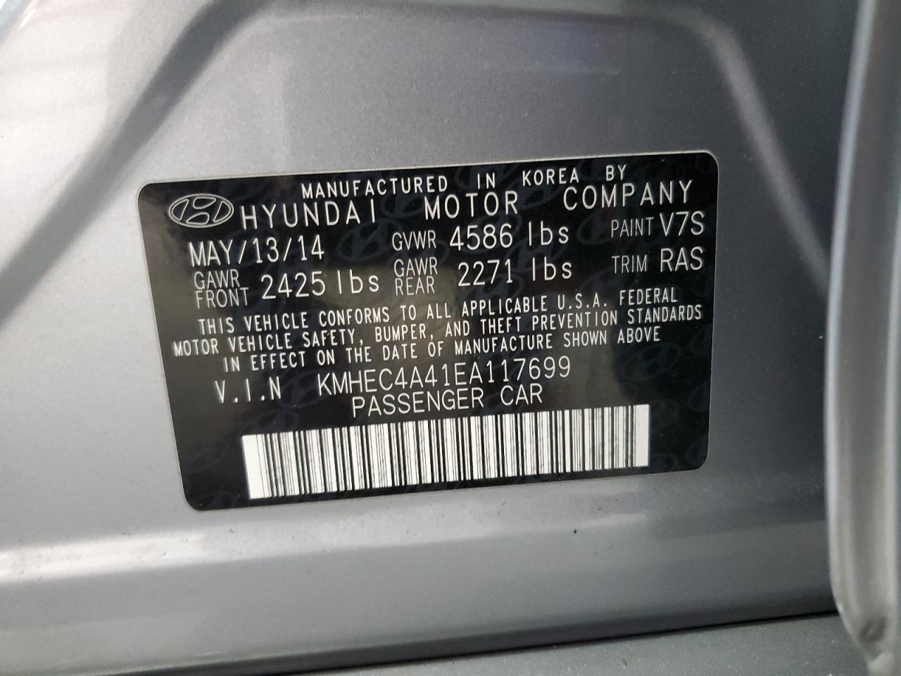 HYUNDAI SONATA 2.4 2014 г.в., (KMHEC4A41EA117699) из США