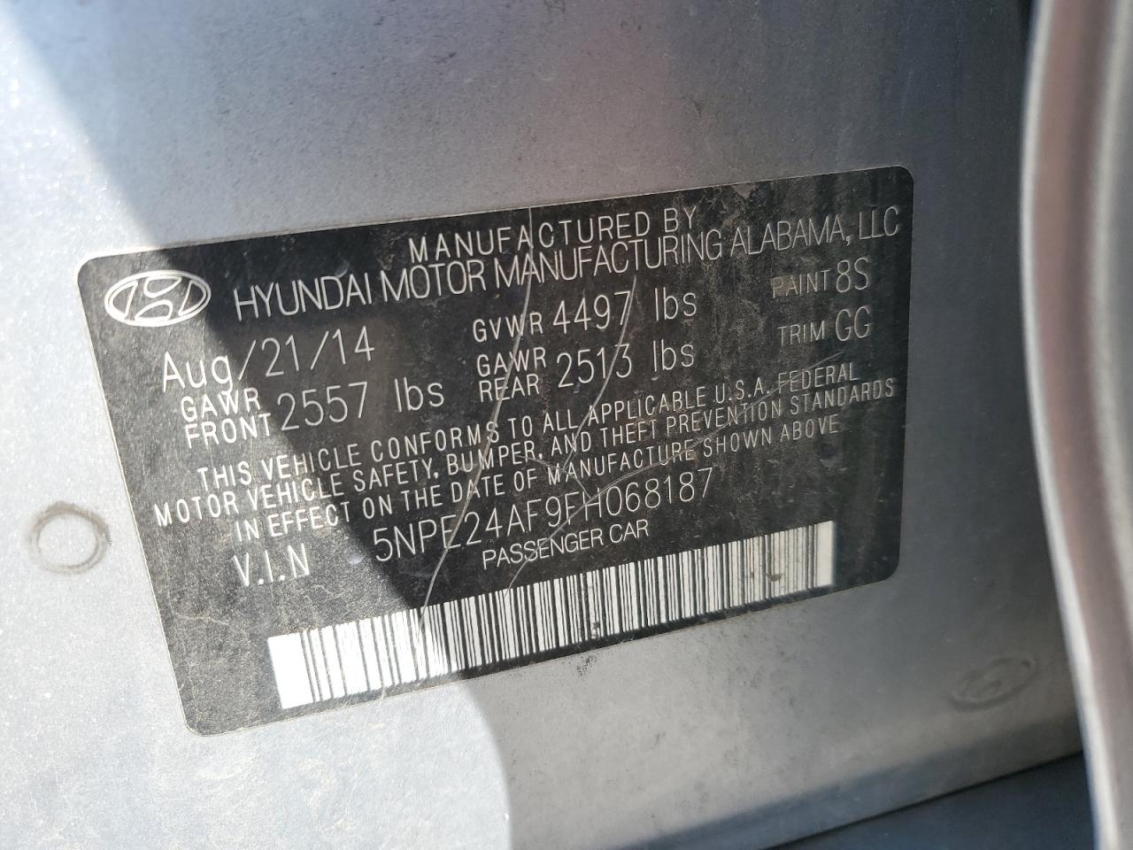 HYUNDAI SONATA 2.4 2015 г.в., (5NPE24AF9FH068187) из США