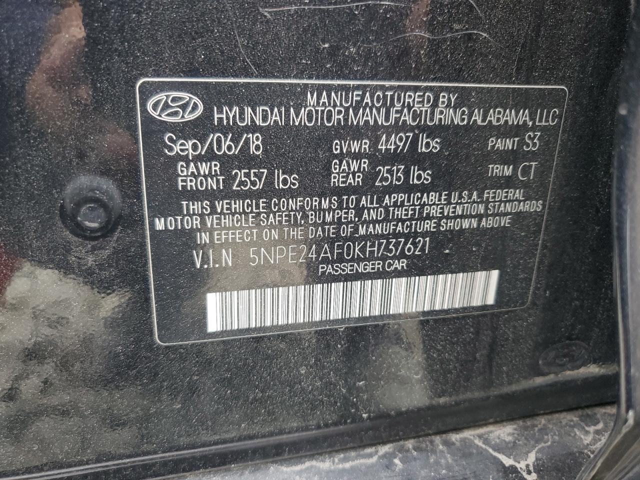 HYUNDAI SONATA 2.4 2019 г.в., (5NPE24AF0KH737621) из США