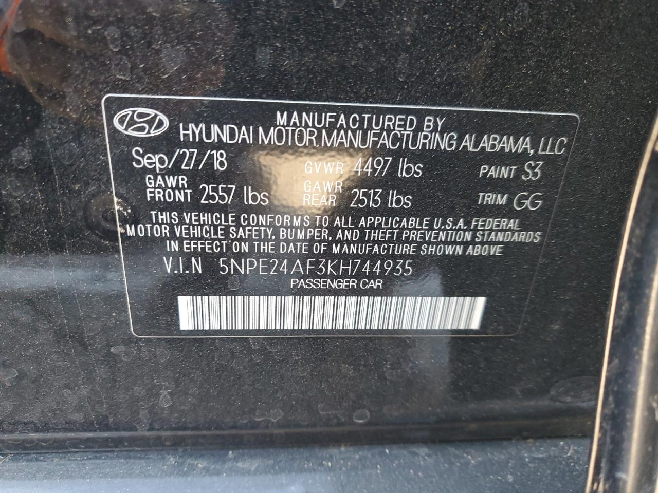 HYUNDAI SONATA 2.4 2019 г.в., (5NPE24AF3KH744935) из США