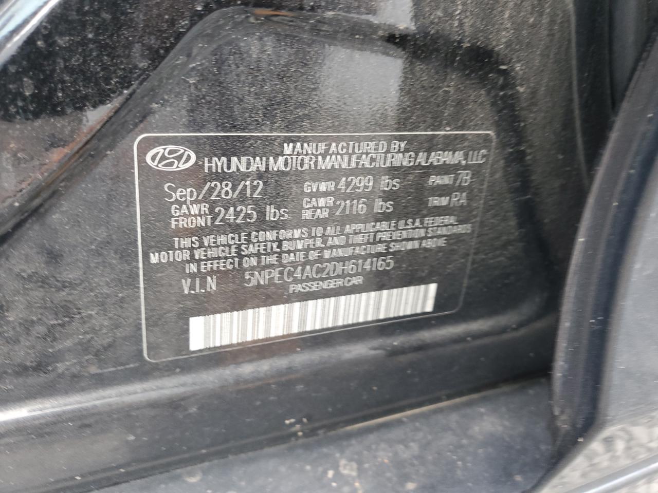 HYUNDAI SONATA 2.4 2013 г.в., (5NPEC4AC2DH614165) из США