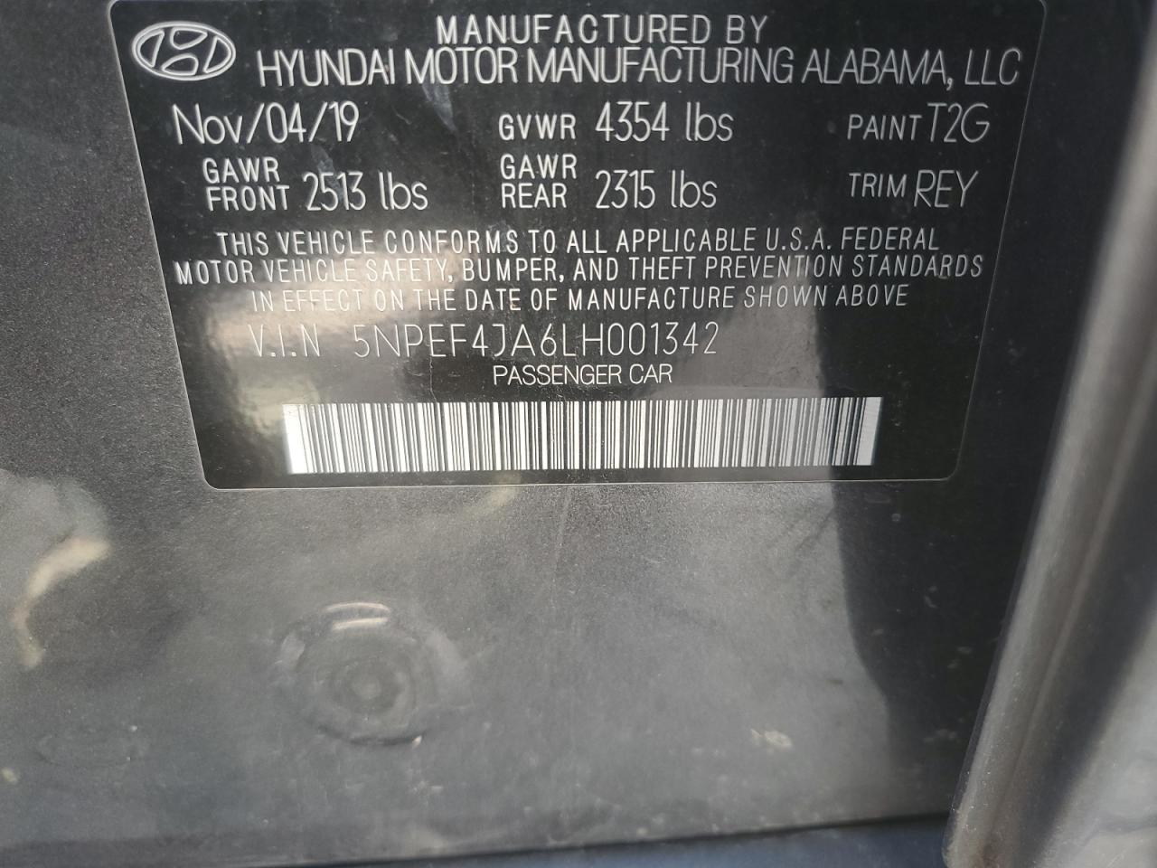 Цвет СерыйЦилиндры 4VIN 5NPEF4JA6LH001342Состояние ЗаводитсяПовреждение По бокамДата аукциона 2025-11-04