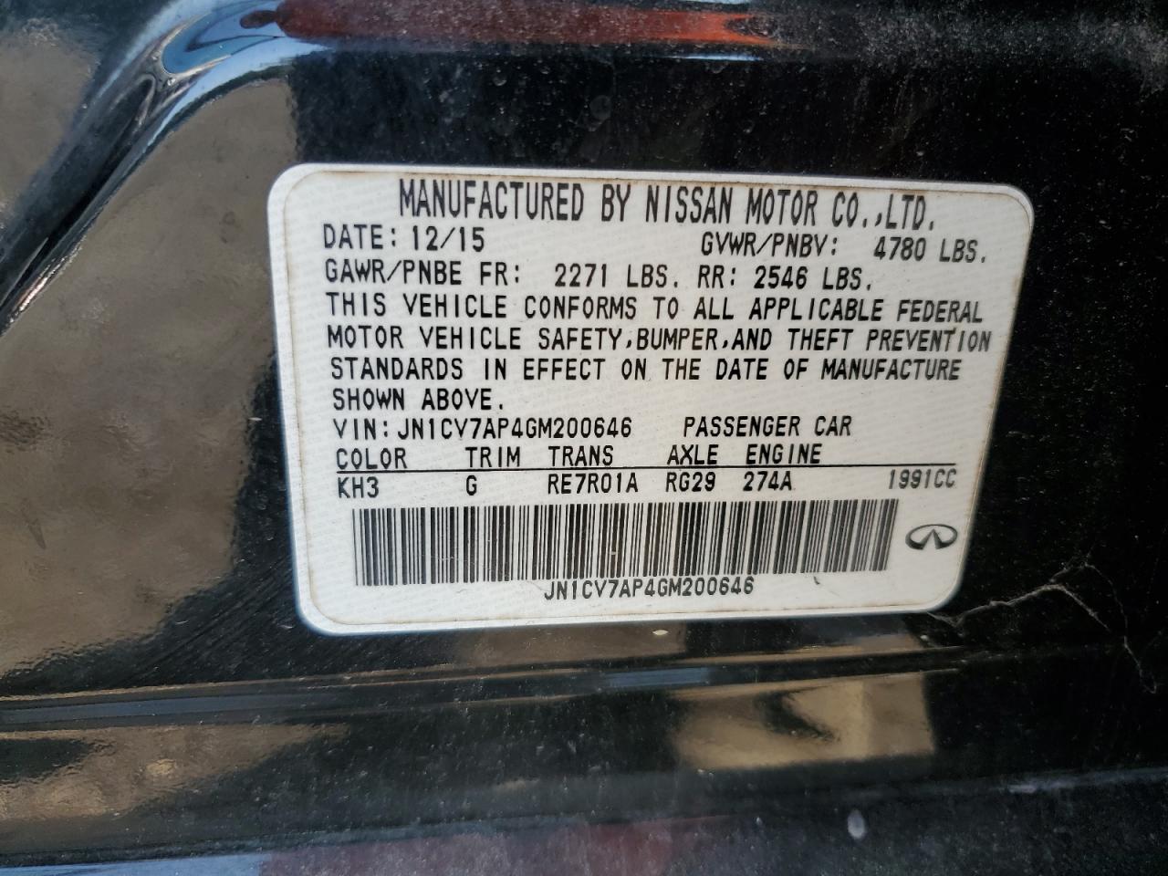 Цвет ЧерныйЦилиндры 4Привод Задний приводVIN JN1CV7AP4GM200646Состояние НеизвестноПовреждение По бокамДата аукциона 2025-11-04