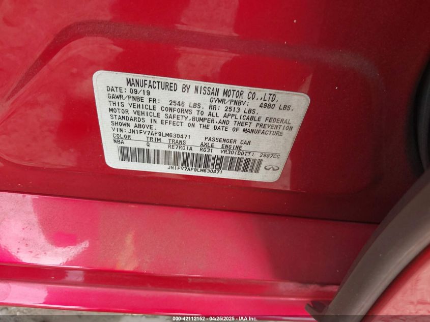 INFINITI Q50 3.0 2020 г.в., Задний привод (JN1FV7AP9LM630471) из США