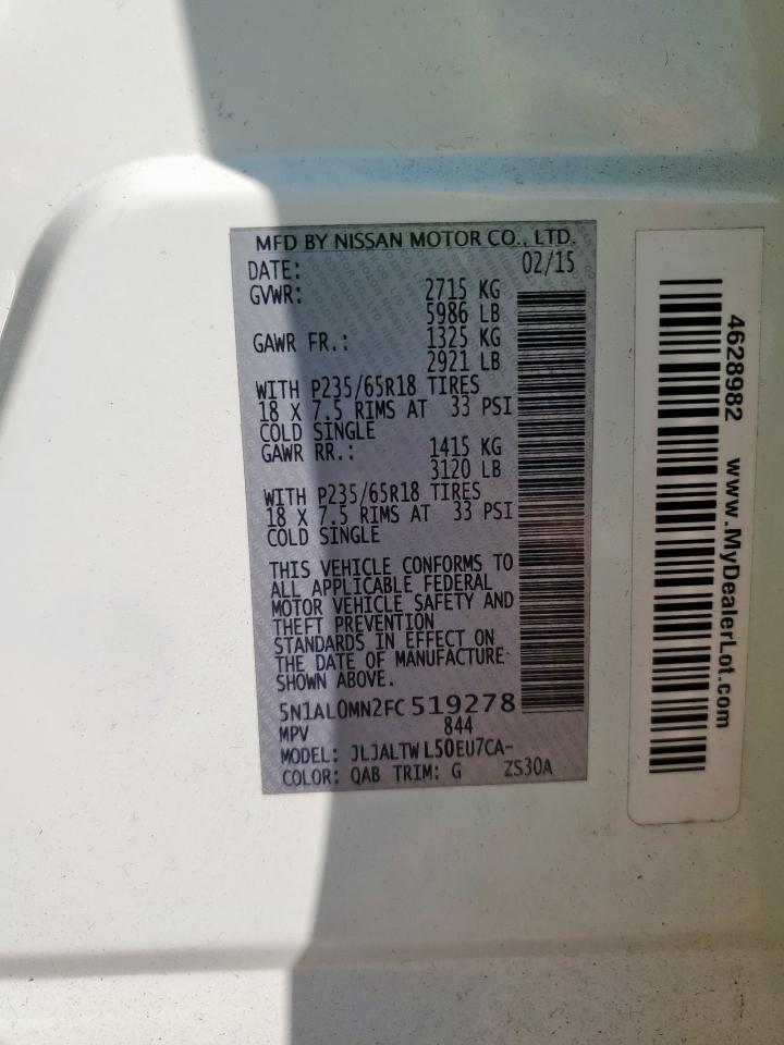 Цвет БелыйЦилиндры 6VIN 5N1AL0MN2FC519278Состояние Заводится и едет (проверено)Повреждение По бокам