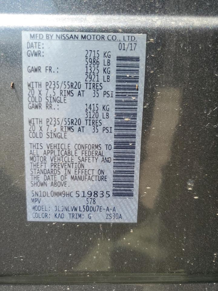 Цвет СерыйЦилиндры 6Привод Полный приводVIN 5N1DL0MM9HC519835Состояние Заводится и едет (проверено)Повреждение Передняя или задняя