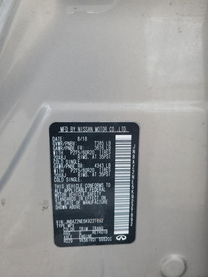 INFINITI QX80 5.6 2019 г.в., 4x4 с задним приводом (JN8AZ2NE5K9227892) из США