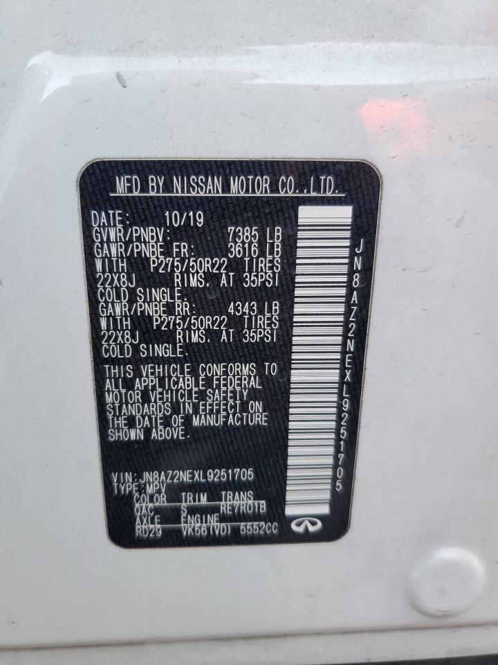 INFINITI QX80 5.6 2020 г.в., 4x4 с задним приводом (JN8AZ2NEXL9251705) из США