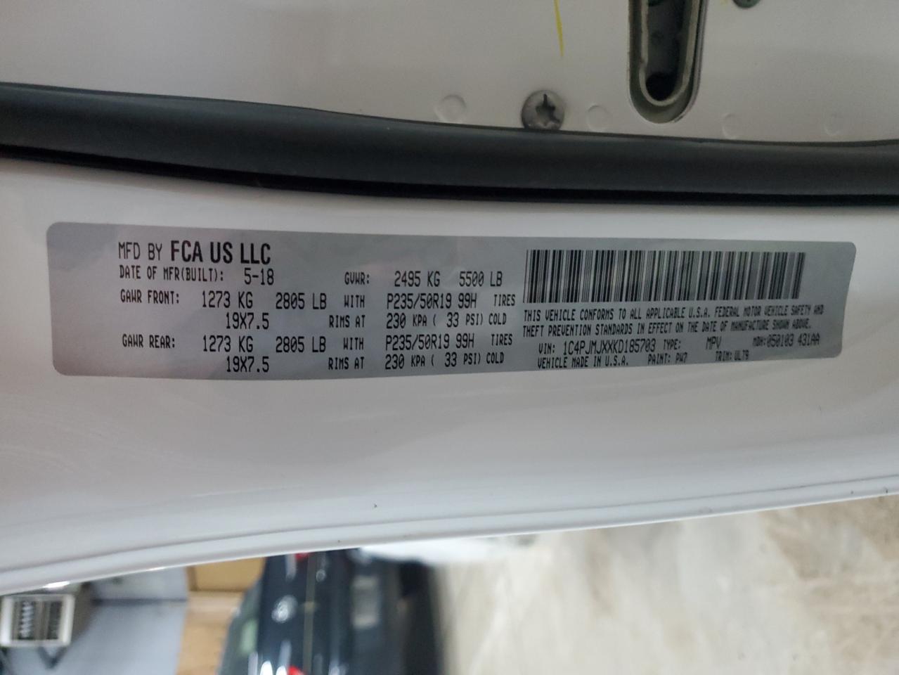 JEEP CHEROKEE 3.2 2019 г.в., 4x4 с передним приводом (1C4PJMJXXKD185703) из США