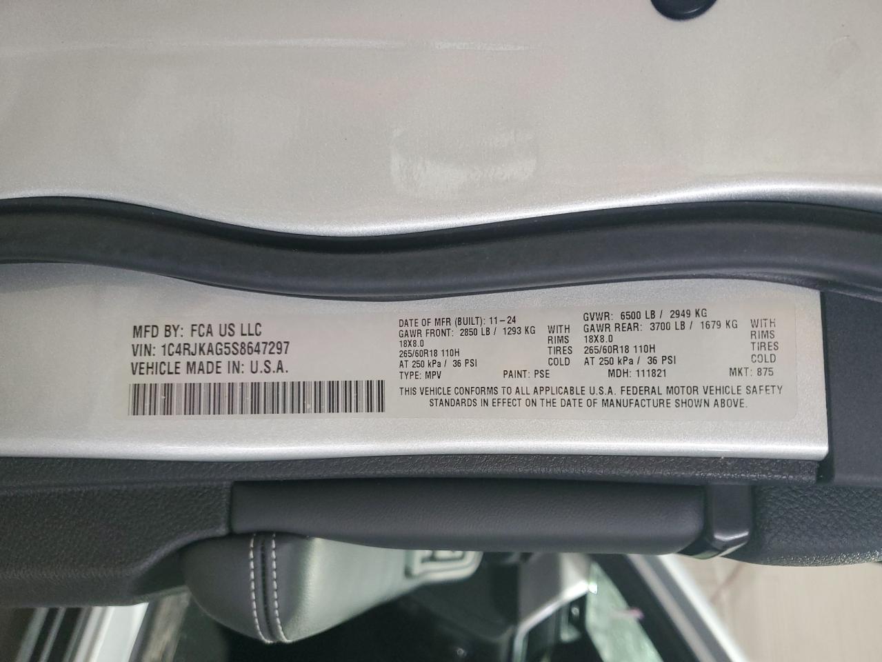 JEEP GRAND CHEROKEE 3.6 2025 г.в., 4x4 с задним приводом (1C4RJKAG5S8647297) из США
