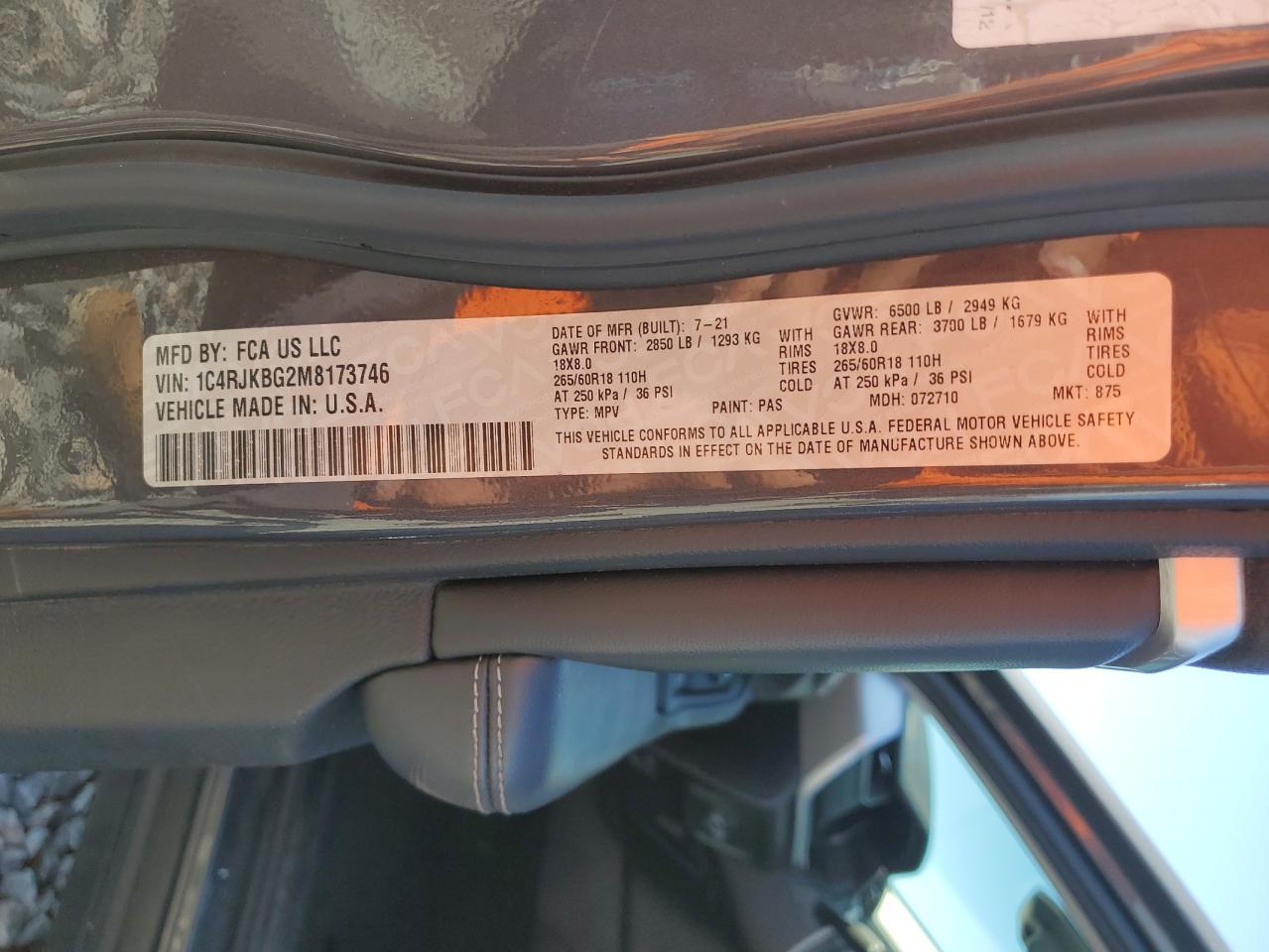 JEEP GRAND CHEROKEE 3.6 2021 г.в., 4x4 с задним приводом (1C4RJKBG2M8173746) из США