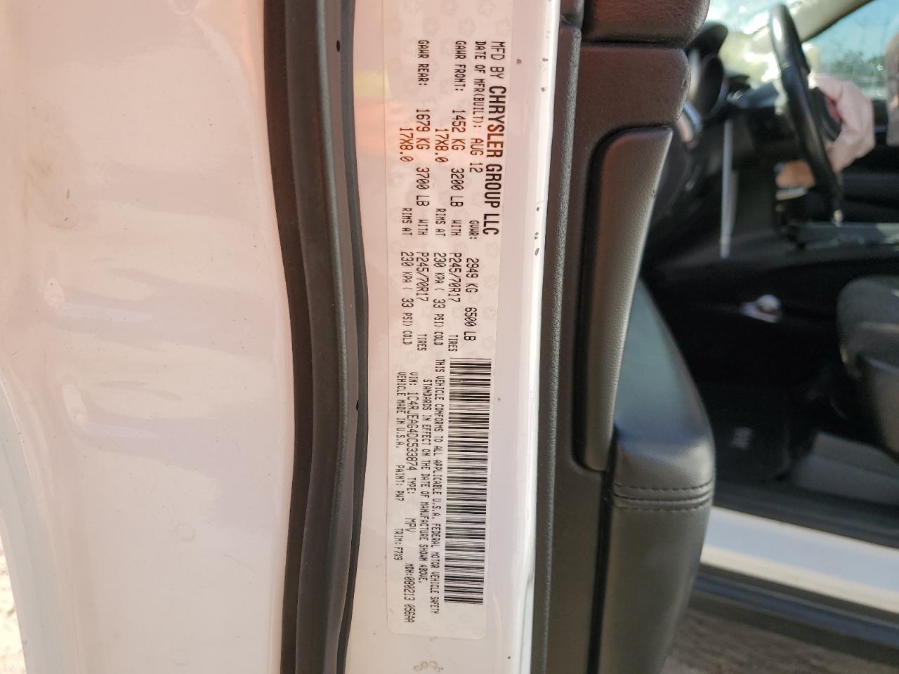 Цвет БелыйЦилиндры 6Привод Задний приводVIN 1C4RJEAG4DC533874Состояние НеизвестноПовреждение Рама
