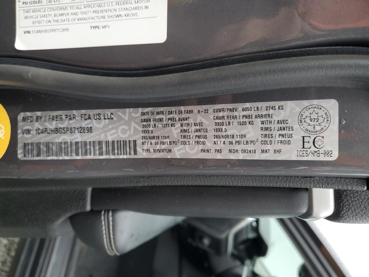 Цвет Древесный угольЦилиндры 6Привод 4x4 с задним приводомVIN 1C4RJHBG5P8712898Состояние НеизвестноПовреждение Передняя или задняя