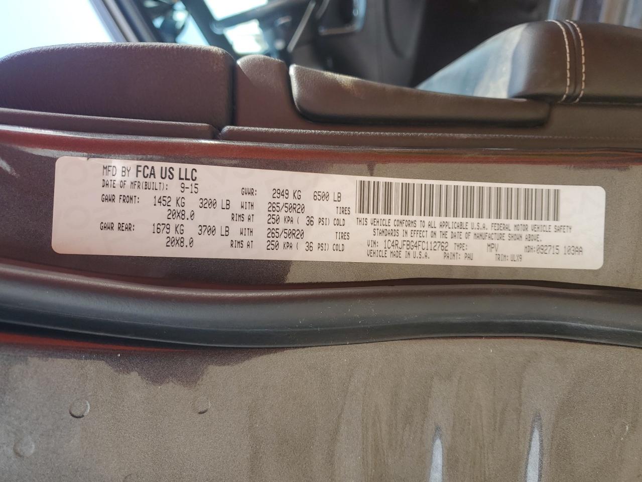 JEEP GRAND CHEROKEE 3.6 2015 г.в., 4x4 с задним приводом (1C4RJFBG4FC112762) из США