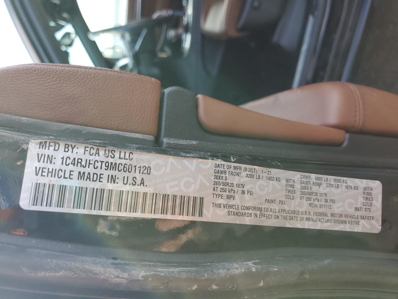 JEEP GRAND CHEROKEE 5.7 2021 г.в., 4x4 с задним приводом (1C4RJFCT9MC601120) из США